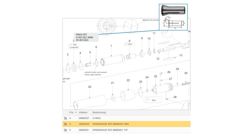 In caso i costi di manutenzione e riparazione non fossero proporzionati al prezzo del nuovo, riceverete inoltre un’offerta per una nuova macchina. Per la riparazione delle macchine vengono utilizzati esclusivamente pezzi di ricambio originali PFERD TOOLS. Dopo la riparazione vi restituiremo la vostra macchina in condizioni pari al nuovo.